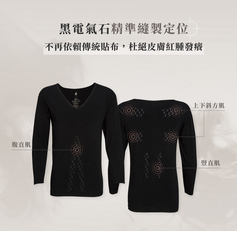 搭配專利黑電氣石印花設計,精準作用於人體結構。
