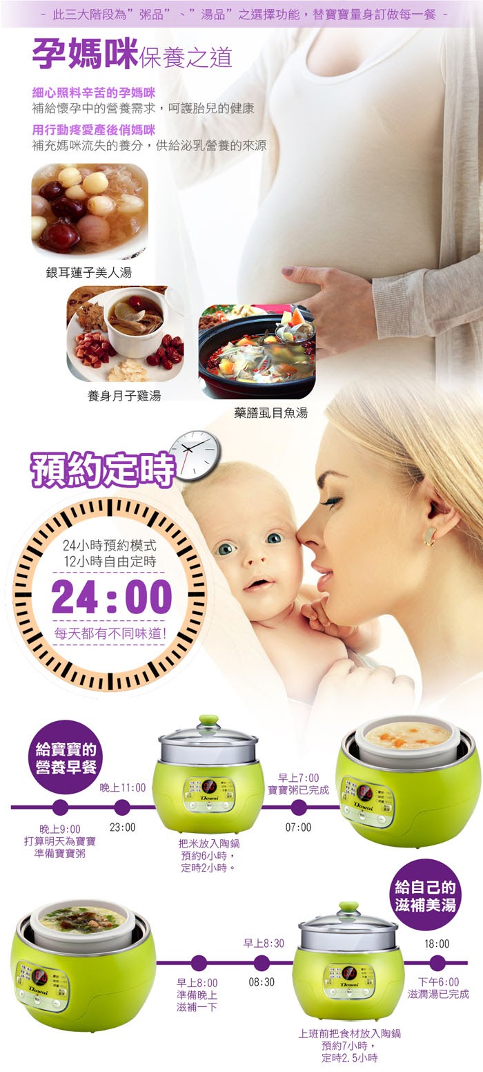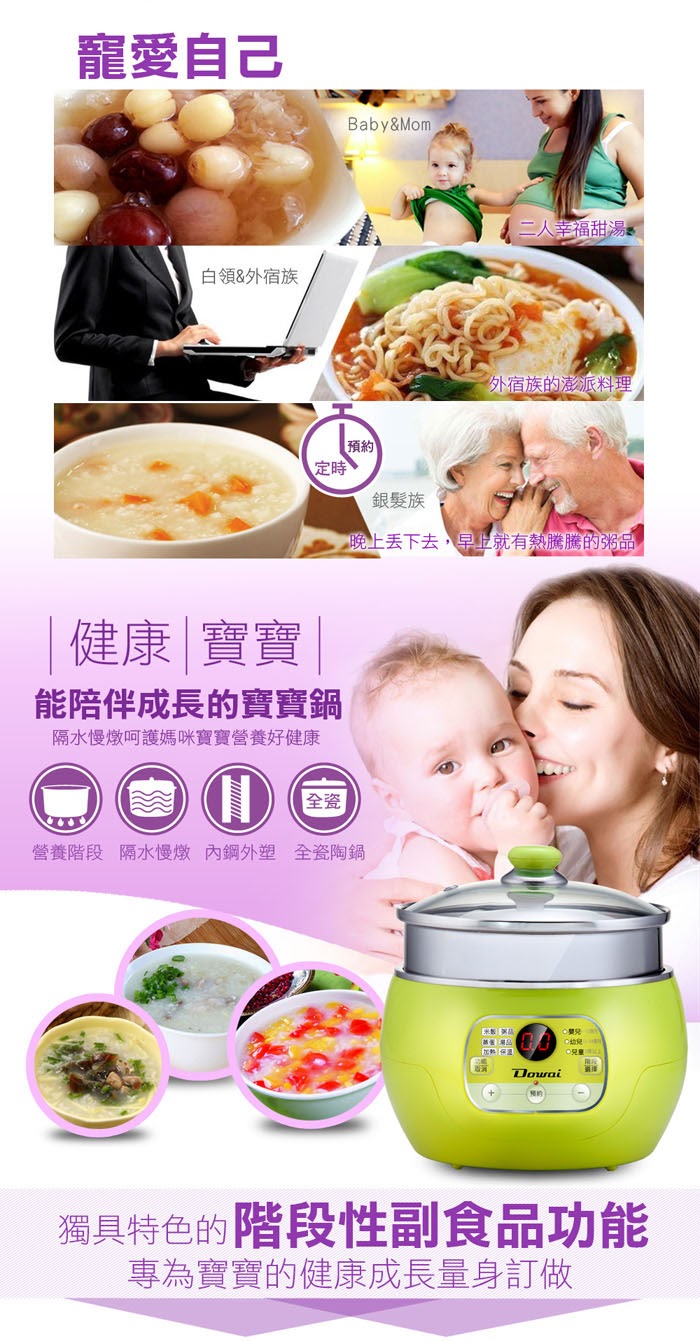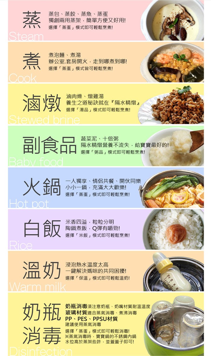 蒸健康寶寶鍋,集合蒸、煮、燉、火鍋、副食品調理等功能,一次到位,貼心符合長輩飲食的各種需求。