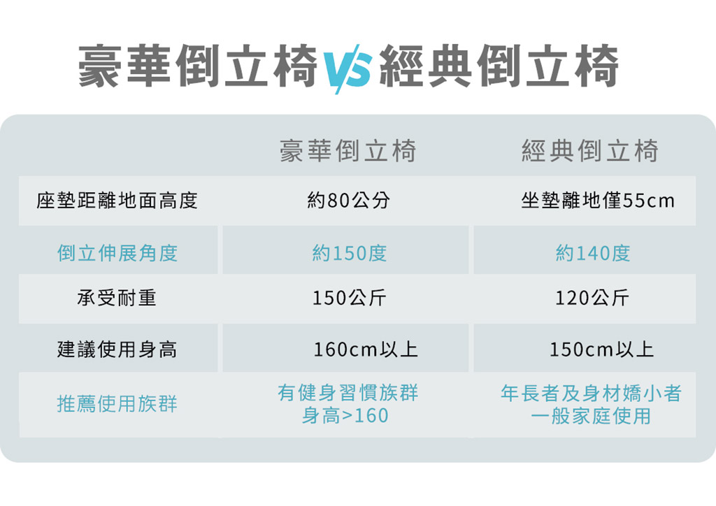 Q:倒立會頭暈目眩,是正常的嗎?  是的,倒立因為能幫助血液回流至大腦。大部分使用者都會有呼吸急促、頭暈目眩及心跳加速等情況,這些都是正常的身體反應現象。(患有心血管疾病、高血壓、癲癇、孕婦、及曾有重大傷害或疾病者,請先諮詢醫師是否適合使用)  Q:「倒立機」?「倒立椅」?我該如何選擇呢?  能讓使用者安全倒立的器材,都是好器材。  Q:「倒立機」和「倒立椅」有什麼關係嗎?  「倒立椅」的發明來自使用「倒立機」時產生的恐懼感,為了能克服「倒立機」直接完成倒立的懼怕,我們做了「椅」式的設計改良。 沒錯,「倒立椅」是改良了「倒立機」而誕生的。  Q:盈亮「倒立椅」有什麼過人的優勢嗎?  讓使用者能先坐著,躺著,再倒立。循序漸進的方式,除了能降低直接「倒立」的恐懼,在倒立動作結束後,因倒立產生的呼吸急促及頭暈目眩感,在回復坐姿時也能得到安全休息。簡而言之,倒立椅能讓使用者在倒立前後,都感到安全且安心。這也是盈亮倒立椅獲得前榮民總醫院副院長徐弘醫師推薦的主因。  Q:每次建議使用倒立椅多久?  倒立的時間會依個人的體質不同而有所不同。若倒立時,感到心跳加速、呼吸急促及頭暈目眩時,就可以緩緩起身,讓自己身體回正,坐在倒立椅上稍作休息,待身體狀況恢復時,再次進行倒立的動作。此程序反覆約為5~10分鐘即可。