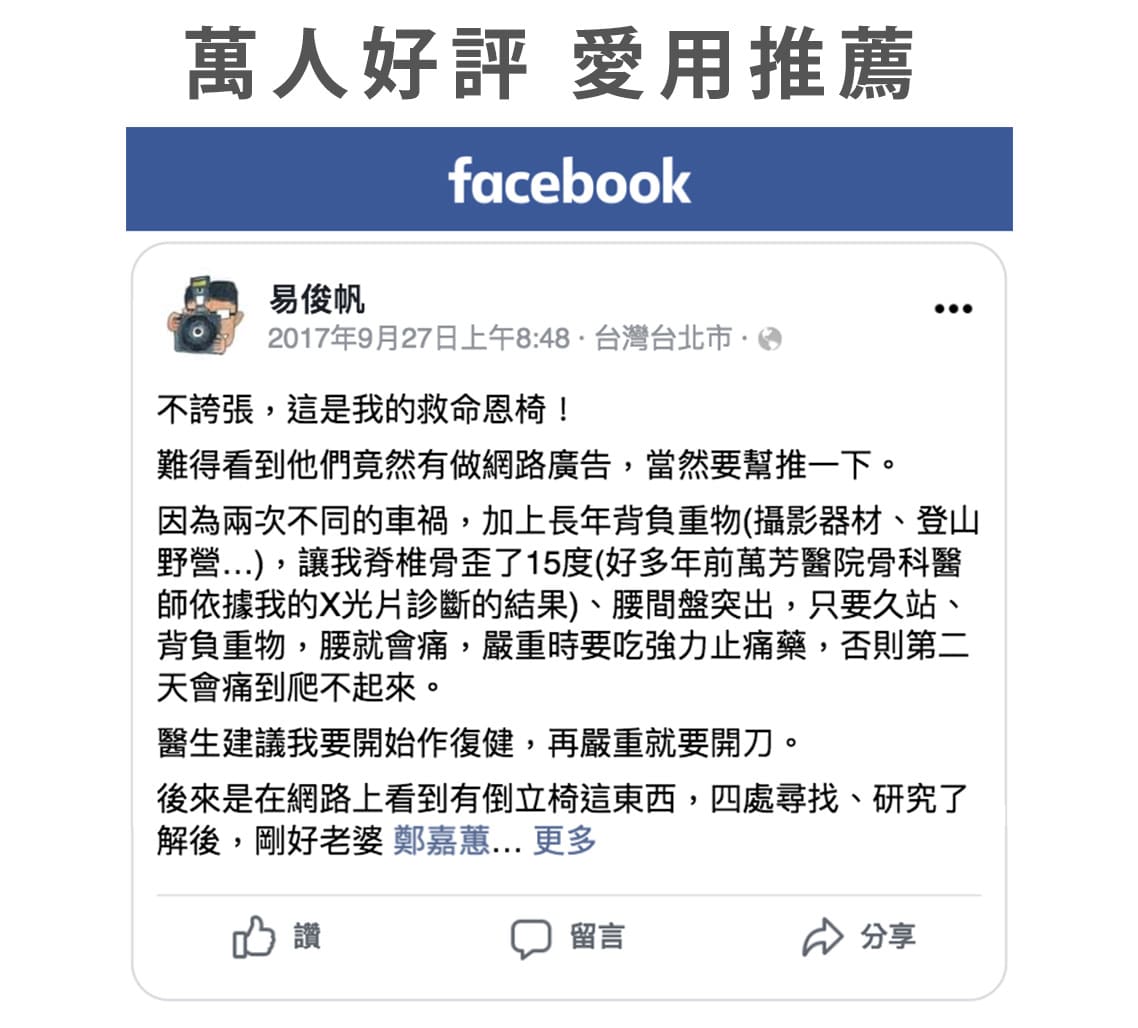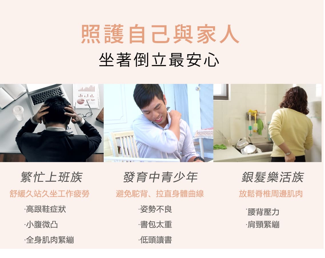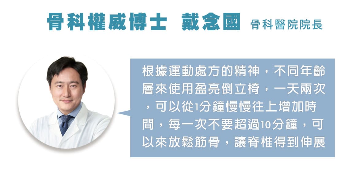 倒立椅能讓使用者在倒立前後,都感到安全且安心。獲得前榮民總醫院副院長徐弘醫師推薦的主因。