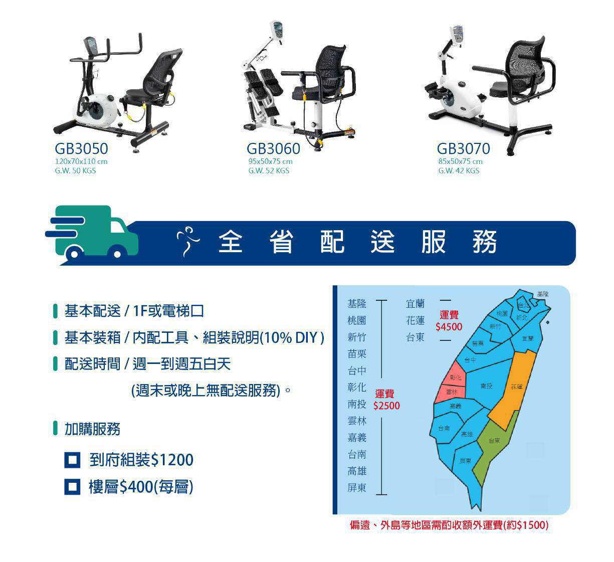1. 此商品由於體積較大,因此安排專車配送,各地區運費請參考上圖標示,配送時請直接支付給配送人員。
