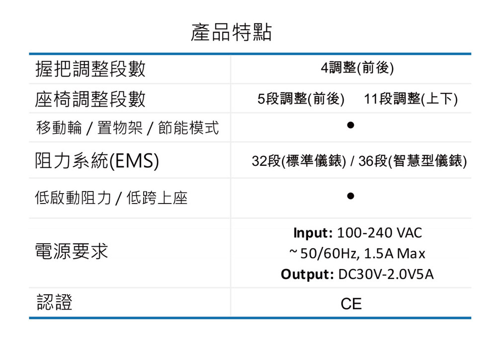 經由踩踏訓練模式,可增強肌肉調節性和身體平衡感;恆定功率運動,可讓使用者設定運動時的強度;人體工學座椅設計、低起始阻力、搭配低跨上座,方便年長者安全有效地進行鍛鍊!