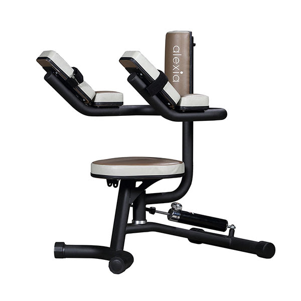9. 特點:座墊桶形設計讓使用者坐骨能坐穩的概念、6段不同油壓阻力可供選擇,且來回雙向皆有阻力、四個腳皆可獨立調整高低,可訓練肌群:腹內斜肌、 腹外斜肌 、腹直肌。