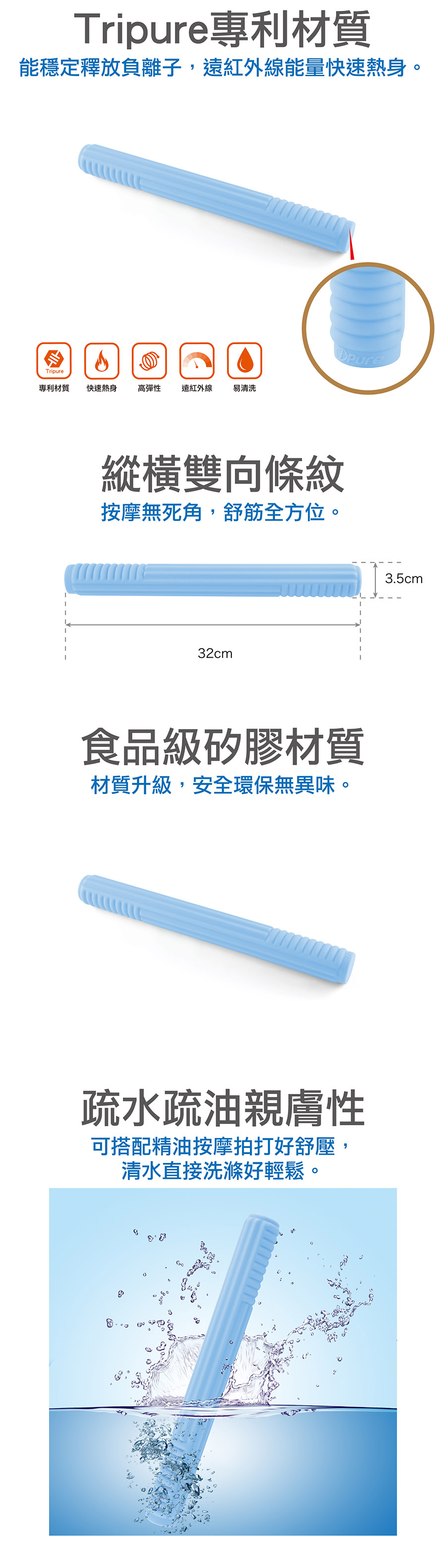1. ● 使用專利Tripure高科技材質