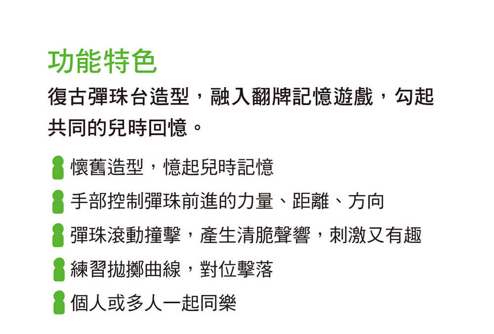 銀髮族隨著年齡增長,需要多動動手、動動腦,手腦眼並用,讓老化的大腦重新煥發活力!【playme】系列玩具藉由深厚的木作專業技術及長期對遊戲教育的用心,開發優質產品創造陪伴共玩的價值,遊戲通過歐盟CE、EN71玩具規範及美、日、台等玩具安全標準,幫助長輩在安全的遊戲過程中,達到活絡身體機能、活化記憶力等有效訓練。