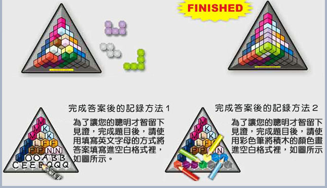 2.增進手眼協調、認識圖形及顏色、空間概念、邏輯思考的訓練。