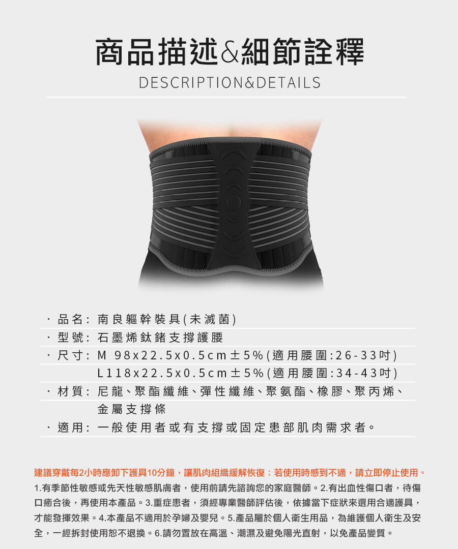 【H&H】南良 石墨烯鈦鍺支撐護腰 - 南良軀幹裝具未滅菌【F2EE9919】