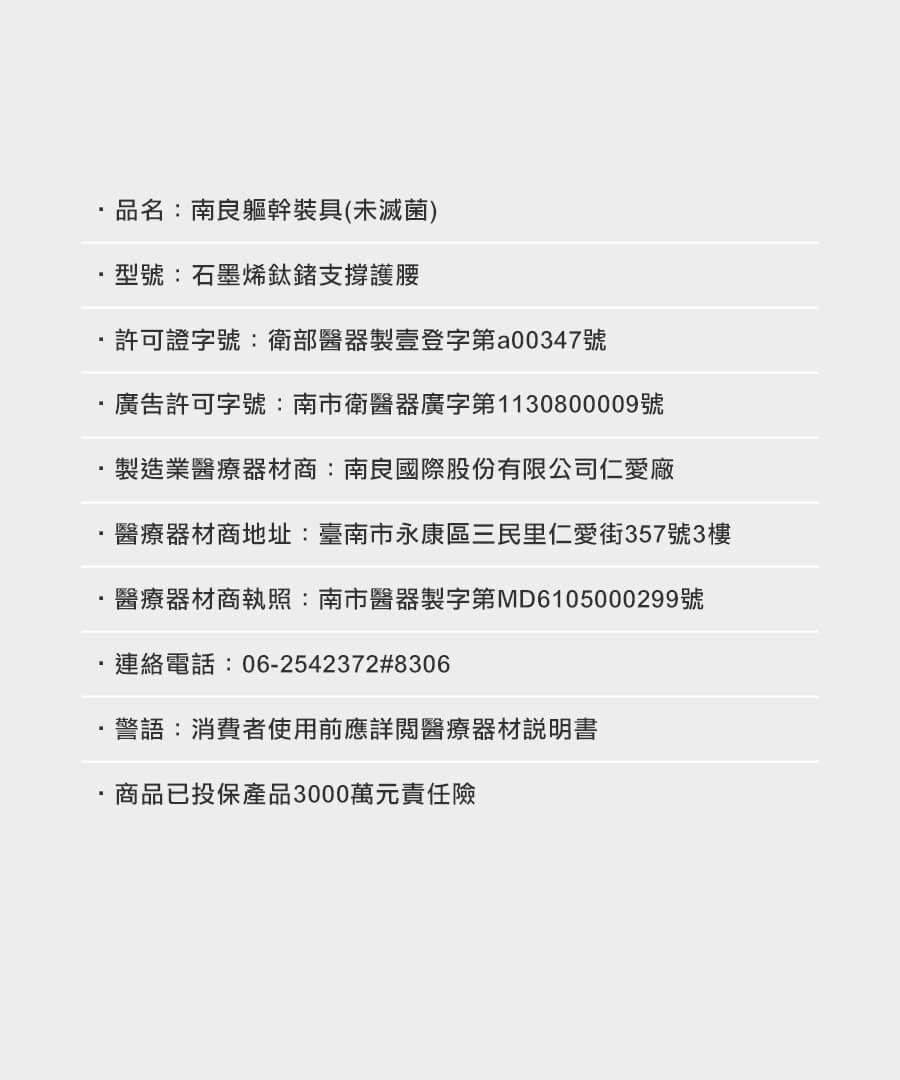 1. 中文品名:南良 軀幹裝具 (未滅菌)