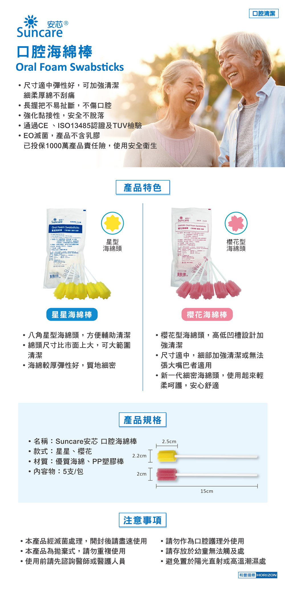 4. 規格:海綿頭直徑 20mm、綿頭長度 25mm、棉棒總長 150mm,5支/包