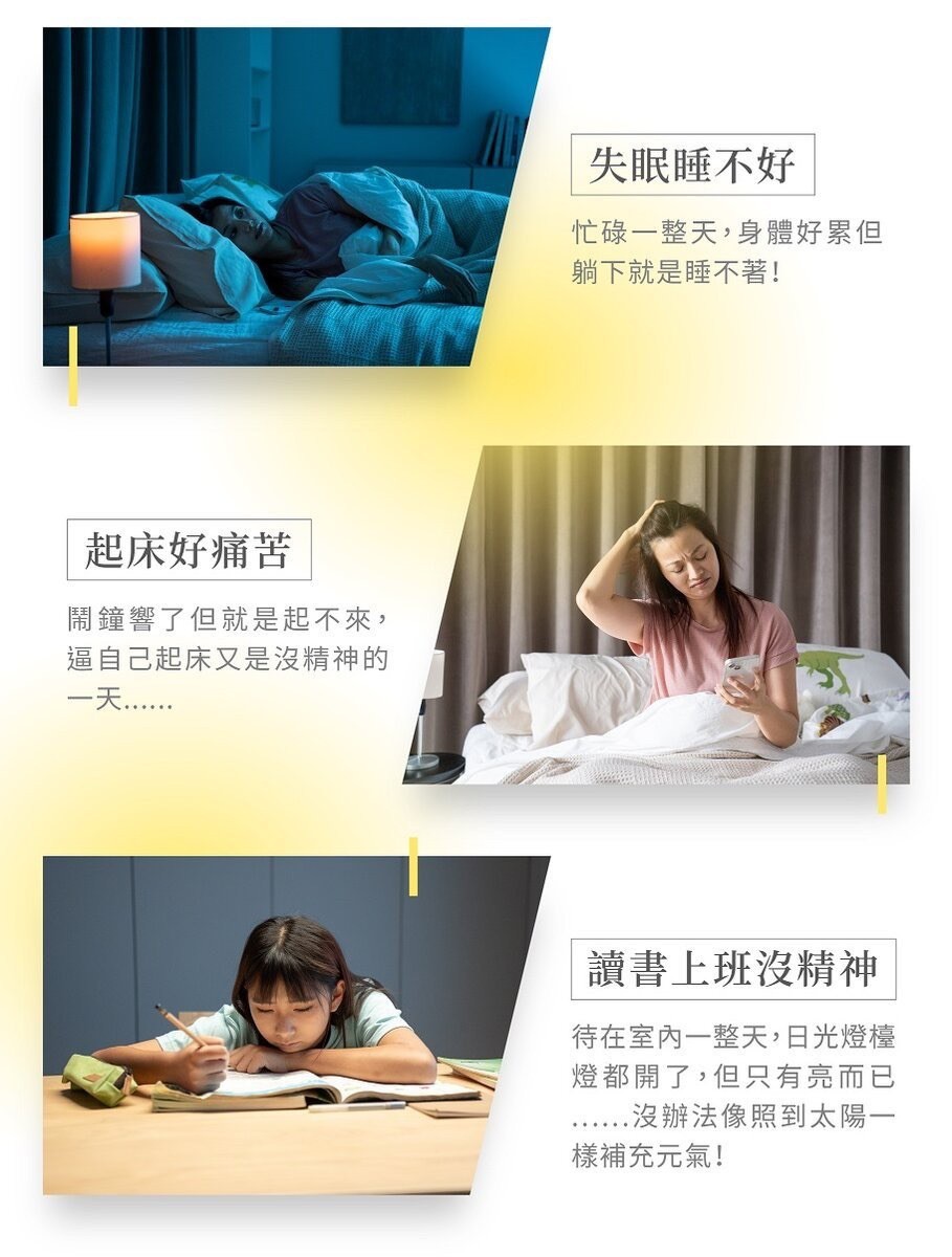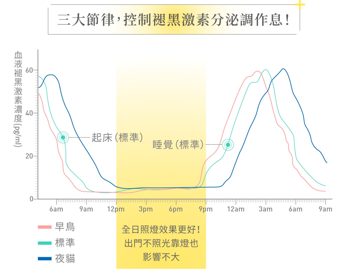 常常失眠的人都知道褪黑激素與睡眠息息相關,要怎麼自然控制身體中的褪黑激素濃度,這件事就跟光線照射有關。而這個發光源的褪黑激素調節能力就是所謂的 CAF(Circadian Action Factor)晝夜節律/生理時鐘刺激值!【SUVIOS】舒活適 L1 節律燈,就是藉由自然地「光照調節」來優化你的作息!