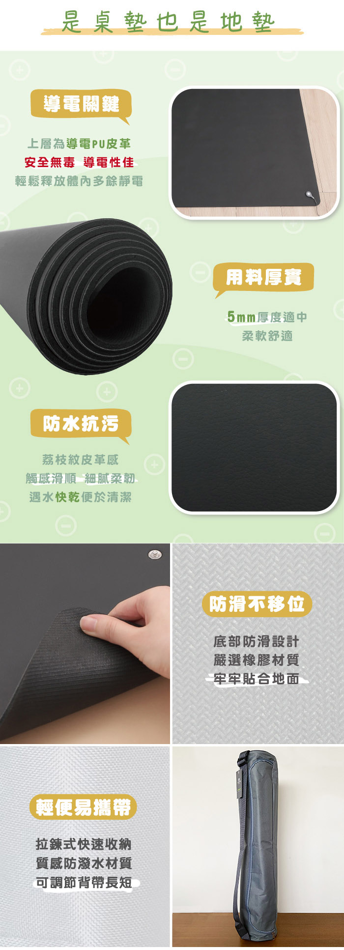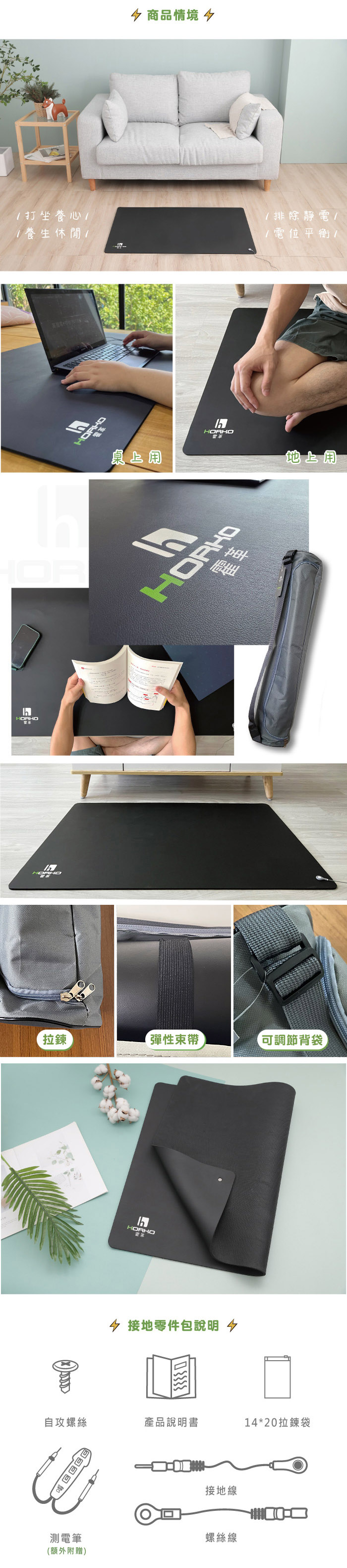 樂齡網推薦【HORKO】霍革 接地氣地墊,透過導電PU皮革,搭配接地線,