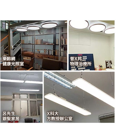 | 建議建置燈數 | 高天花板、需要高劑量光照:1.5~2盞 /坪 低天花板、不需高劑量光照:1盞 /坪 |