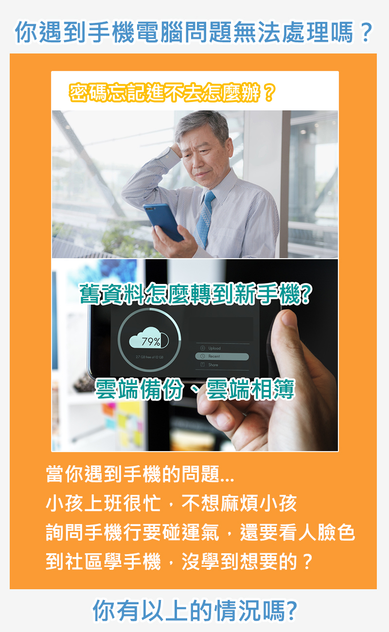 遇到手機問題,小孩上班很忙,不想麻煩小孩?詢問手機行要碰運氣,還要看人家臉色?