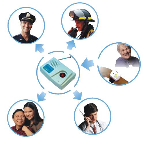 具有防水功能,並可選擇項鍊或手腕兩種攜帶方式。 黃色按鈕:平時為呼叫功能,當觸動警報後,也具有解除警報功能。 紅色按鈕:兩側一起按下,為緊急求救功能,立即啟動警報,主機馬上自動撥號通報,對外求援。 |