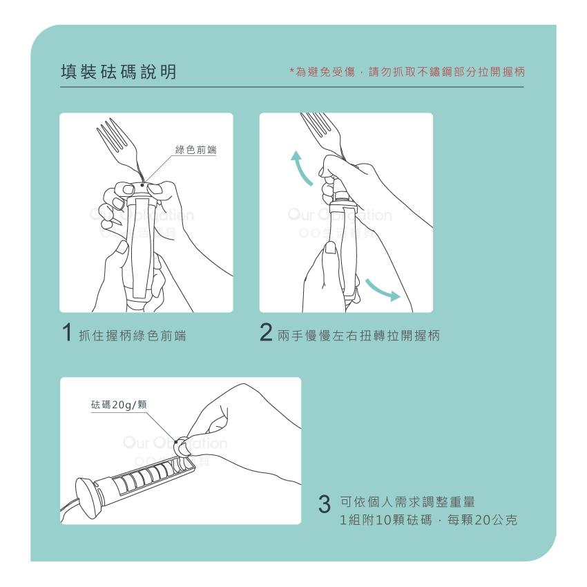 • - 餐具清洗前需將砝瑪取出,砝碼清潔後需保持乾燥。