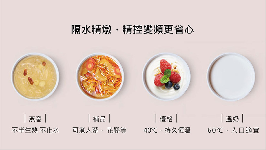 • 慢燉 燉湯、粥品、燕窩、優格(8小時)