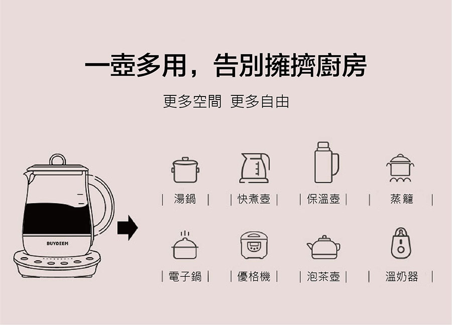 【BUYDEEM】北鼎 多功能烹煮壺 1.5L - 粉漾美顏壺【K1KA62050000000】