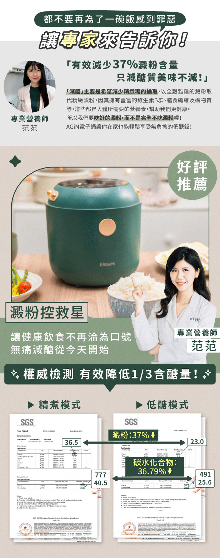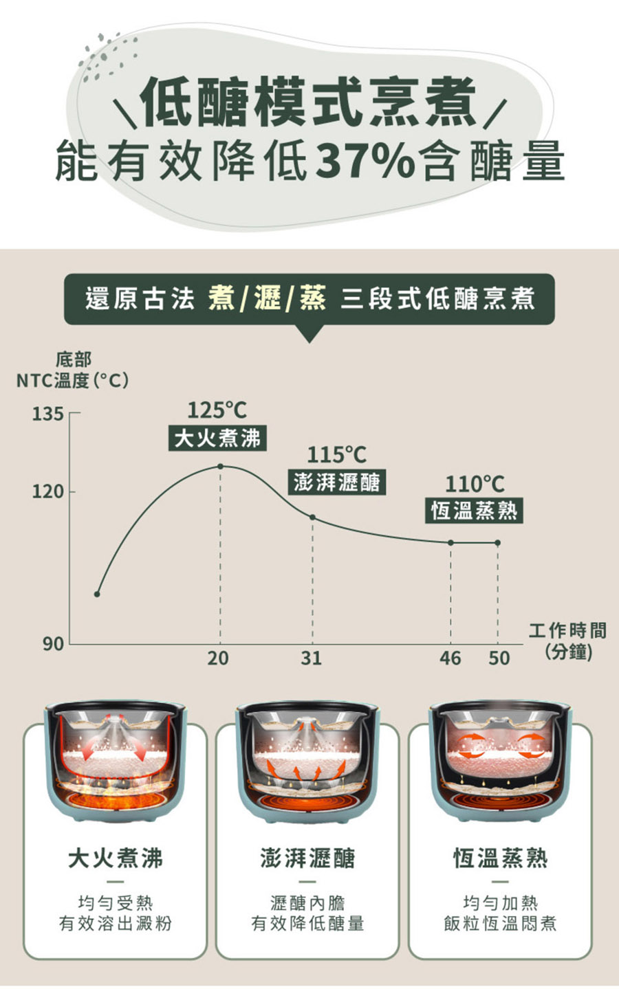 2. ● 低醣模式烹煮,降低 37% 含醣量