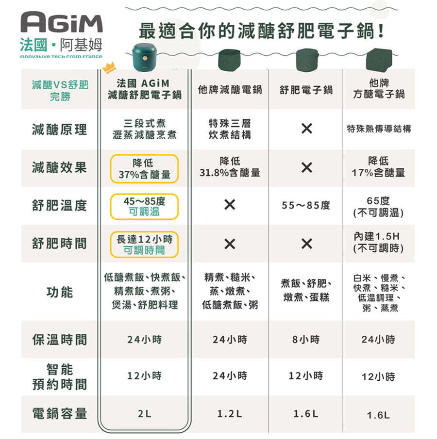 您是否擔心長輩的健康,尤其是醣分攝取過多的問題?是否在為年長家人尋找既方便又健康的烹飪工具而苦惱?法國【AGiM】阿基姆減醣舒肥電子鍋專為銀髮族設計,讓您輕鬆烹調出低醣、健康的美食。這款電子鍋具備減醣功能,能有效減少食物中的醣分,適合需要控制血糖的長輩使用。操作簡單,省去繁複的步驟,讓健康變得更容易。體貼設計,讓您與家人享受健康美味的每一餐,帶來全新的生活品質。