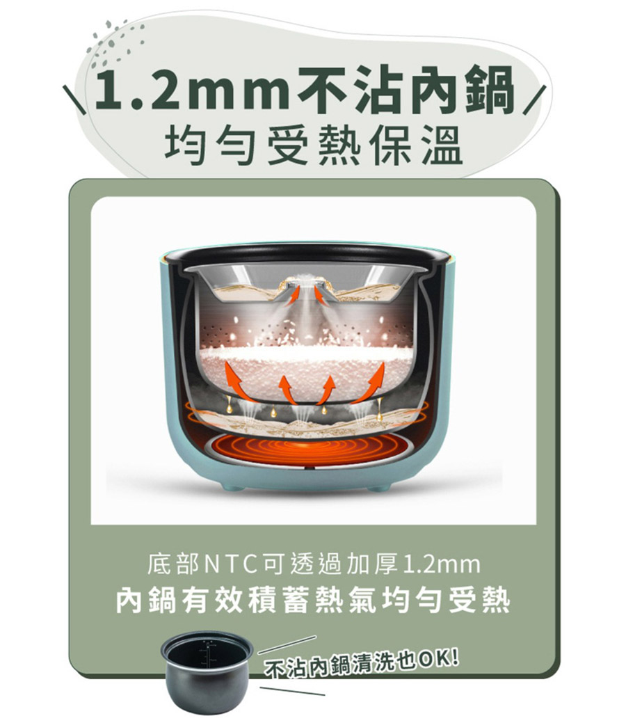 5. ● 厚釜不沾內鍋,有效蓄集鍋中熱氣