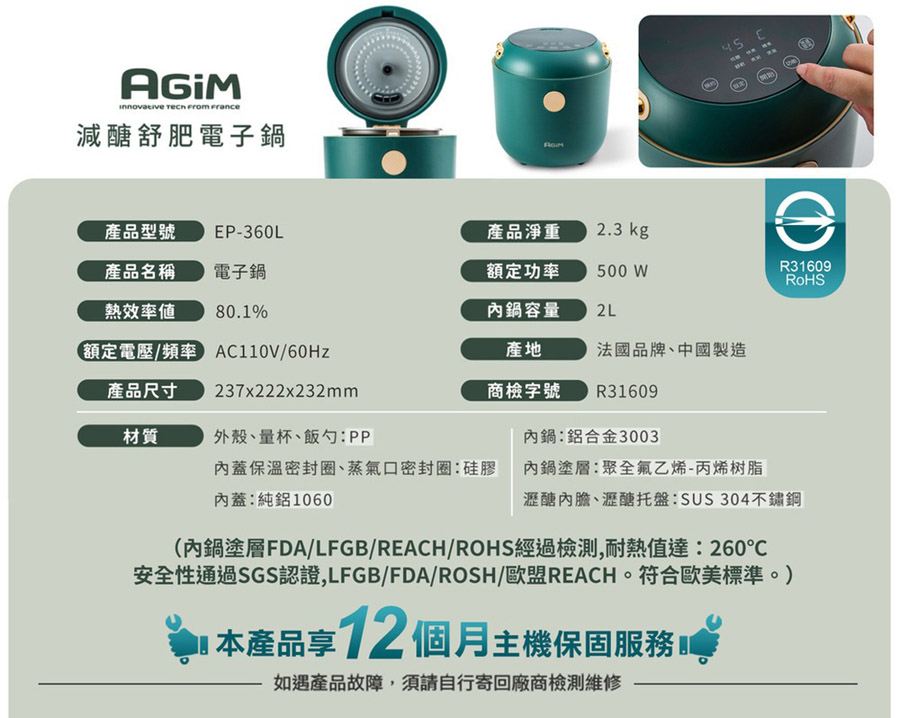 法國【AGiM】阿基姆 減醣舒肥 電子鍋【K1KA6310GRN0000】