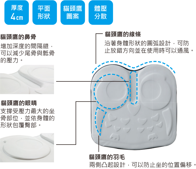 理想的坐墊從坐下那一刻起至起身,協助我們平均分配身體重量,並保持骨盆、脊椎的正確位置,若坐墊擁有