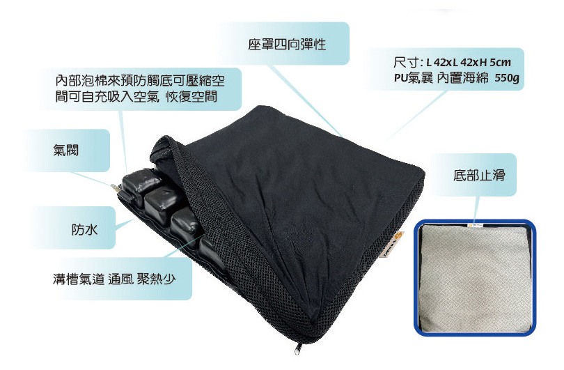 【True Source】淳碩 自充式PU氣囊坐墊,完美支撐臀部與尾椎,減輕久坐壓力。