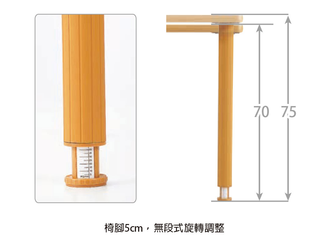 ◆ 桌高70~75cm,5cm旋轉調整