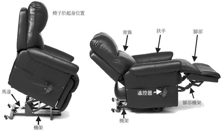 | 材質 | 產品正面使用真皮 (一般使用者會接觸到的區域,例如坐墊、背靠、扶手),其餘使用PVC皮料 |