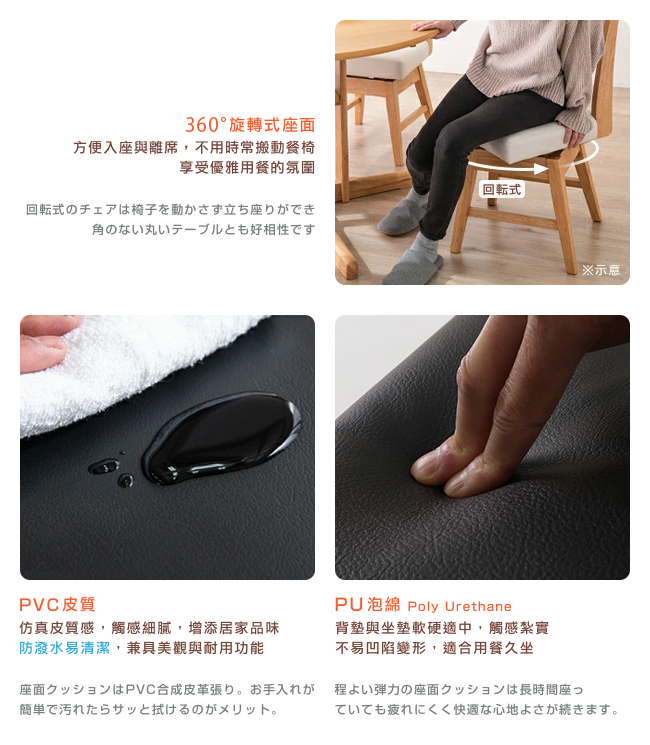 一般餐椅通常都是一體成型,座椅固定、無法轉向,對於腰部僵硬的銀髮族或上班族來說,坐下起身都會卡卡的,比較費力...