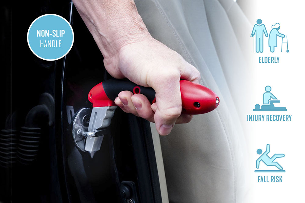 Stander 的 上下車輔助安全握把 是汽車安全工具!協助使用者在進出車輛時、能夠輕鬆安全地上車入座或起身下車,提供支撐力並防範失衡跌倒。附加功能如安全帶切割器和破窗器,使其成為汽車安全和支持長者平穩上下車的全方位解決方案。