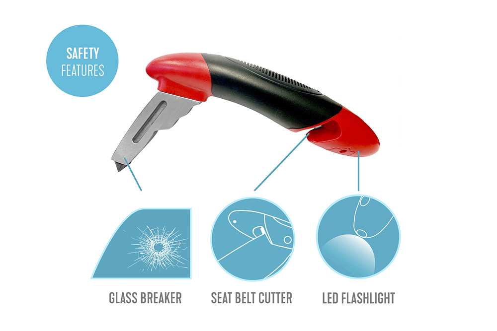 4. 緊急情況:發生緊急情況時,可利用它打破車窗玻璃或切斷安全帶。