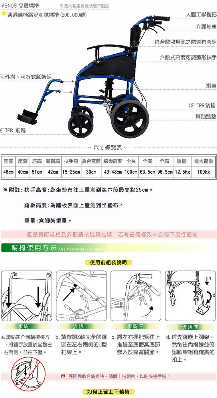 1. 中文品名:"NOVA" 輪椅(未滅菌)