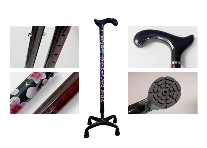 碳纖伸縮兩節 L型握柄 大四腳手杖 Q7 - 瑞瀛 醫療用手杖 (未滅菌)【M2CN1503】