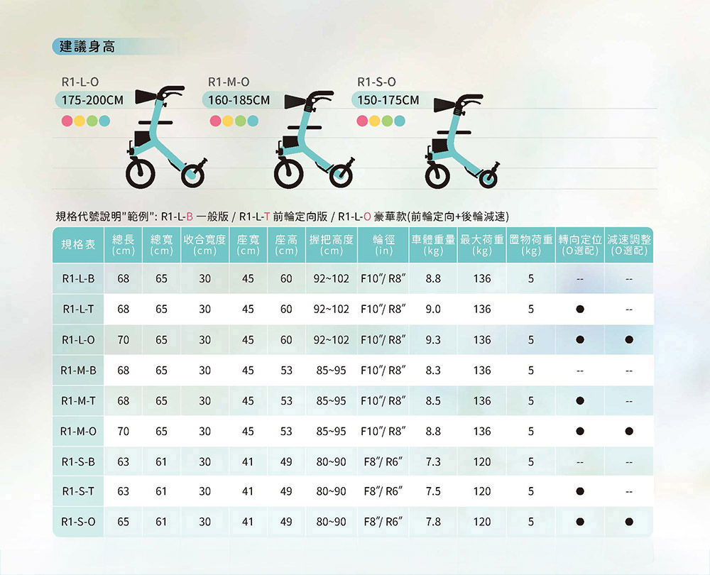 | 定向前輪 | ✔ | ✔ | ✘ |