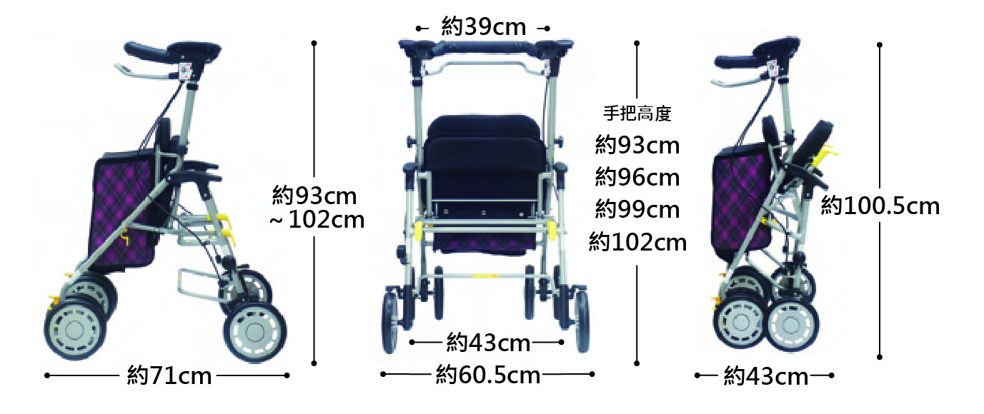 4. 把手高度:約 93~102cm (4段調節)
