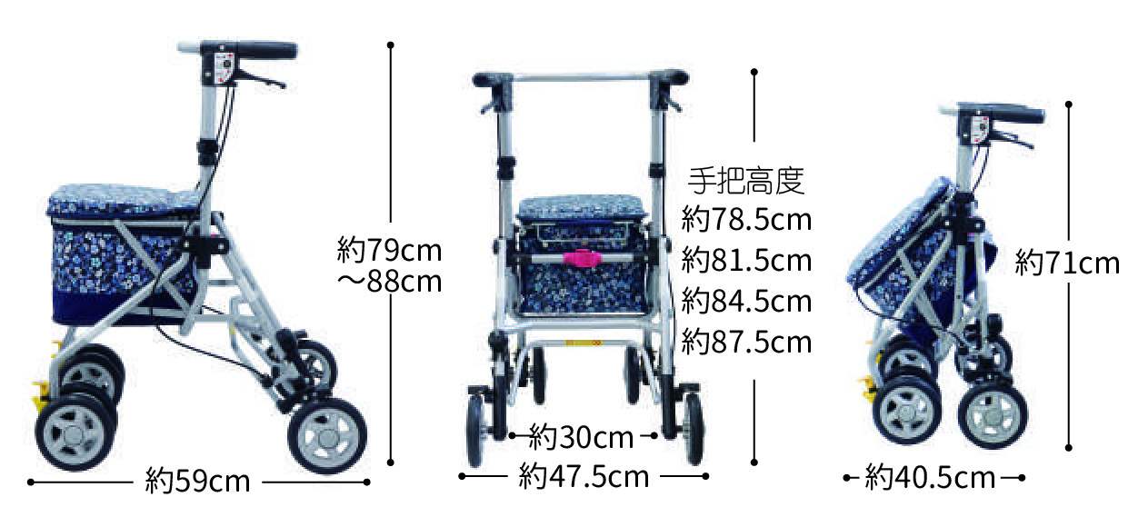 4. 把手高度:約 78.5~87.5cm (4段調節,間距約 3cm)