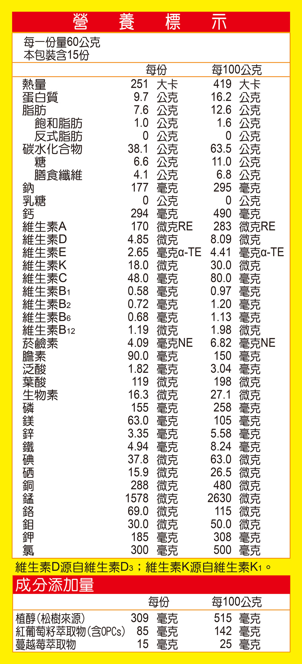 2. 本配方特別添加紅葡萄籽萃取物(含OPCs)及蔓越莓萃取物,