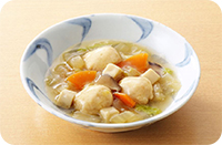 蔬菜(白菜、日本白蘿蔔、胡蘿蔔)、雞肉丸(雞蛋、小麥、大豆、雞肉)、豆腐[大豆,氯化鎂(豆腐凝固劑)]、米發酵調味料[米、葡萄糖、食鹽、酵母粉、葡萄、高果糖漿(玉米、馬鈴薯、紅薯)、麥芽糖、砂糖、食鹽、水、酒精]、玉米澱粉、醬油、香菇、鰹魚片萃取物、酵母萃取粉、鰹魚片萃取粉、雞肉萃取物、昆布萃取粉、食鹽、砂糖、調味劑(L-麩酸鈉、胺基乙酸、DL-胺基丙酸、5’-次黃嘌呤核苷磷酸二鈉、5’-鳥嘌呤核苷磷酸二鈉、琥珀酸二鈉、反丁烯二酸一鈉、琥珀酸)、蛋殼鈣、檸檬酸鈉、葡萄糖酸鈉、碳酸鉀、碳酸氫鈉、開水