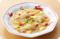 蔬菜(大白菜、胡蘿蔔、玉米、甜椒、薑)、蝦丸[蝦、阿拉斯加鱈魚、玉米澱粉、馬鈴薯泥、蛋白、食鹽、蝦粉、蝦醬(蝦、食鹽)]、雞蛋、玉米澱粉、雞肉萃取粉(雞肉、小麥、大豆、牛奶)、大豆油、油菜籽油、芝麻油、鰹魚萃取粉、砂糖、酵母萃取粉、食鹽、昆布萃取粉、白胡椒、調味劑(L-麩酸鈉、5’-次黃嘌呤核苷磷酸二鈉、5’-鳥嘌呤核苷磷酸二鈉、檸檬酸鈉、胺基乙酸、DL-胺基丙酸、琥珀酸二鈉、磷酸二氫鉀、琥珀酸)、蛋殼鈣、檸檬酸鈉、葡萄糖酸鈉、碳酸鉀(無水)、碳酸氫鈉、開水