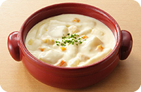 蔬菜(馬鈴薯、洋蔥、胡蘿蔔)、牛乳製品(棕櫚仁油、棕櫚油、奶脂、脫脂奶粉、乾酪、乳蛋白、奶油脂、食鹽)、牛奶、義大利麵(小麥粉)、干貝、奶油、小麥粉、玉米澱粉、牛奶蛋白、食鹽、酵母萃取粉、大豆油、蛋黃油、干貝粉(干貝萃取、食鹽、糊精、乳糖)、白胡椒、蛋殼鈣、玉米糖膠、調味劑(L-麩酸鈉、胺基乙酸、DL-胺基丙酸、琥珀酸二鈉、琥珀酸、5’-次黃嘌呤核苷磷酸二鈉、5’-鳥嘌呤核苷磷酸二鈉)、開水