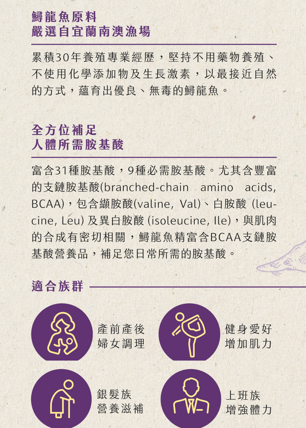 (場長與徒弟們日夜辛勞,照顧魚蝦)| 營養標示 | ||