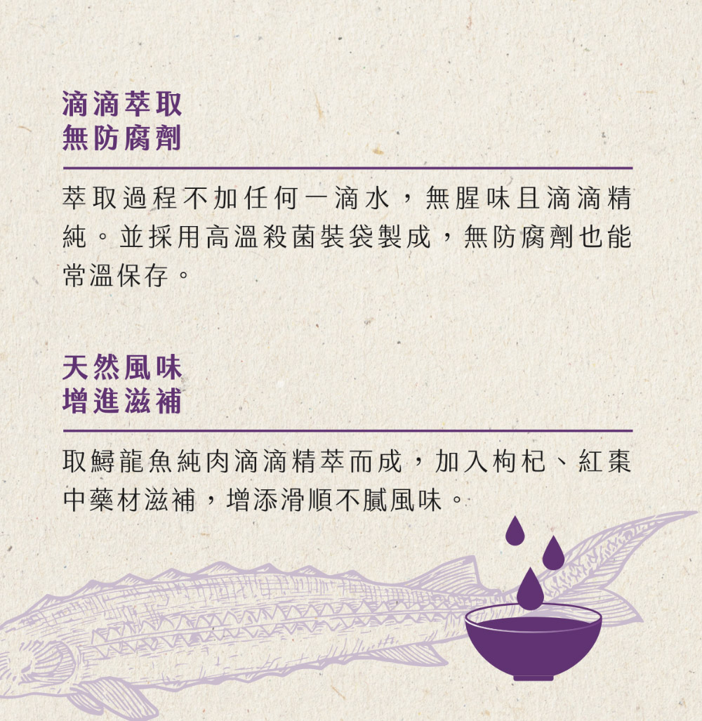擁有豐富的膠質,蛋白質含量也高於其他魚種,全魚都是珍寶,自古就是珍貴食品與食療用材。慢食優鮮的鱘龍魚,來自南澳契養漁場,並且自源頭替您把關,每隻鱘龍魚皆建立溯源管理體系,每條魚植入晶片,可追蹤履歷。/pd04.jpg)