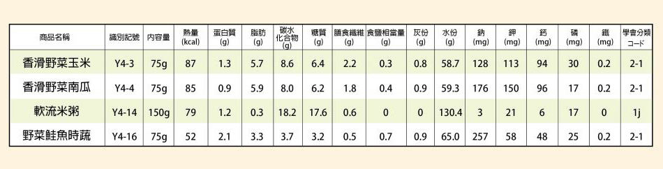 Y4-16 野菜鮭魚時蔬 營養標示 | ||