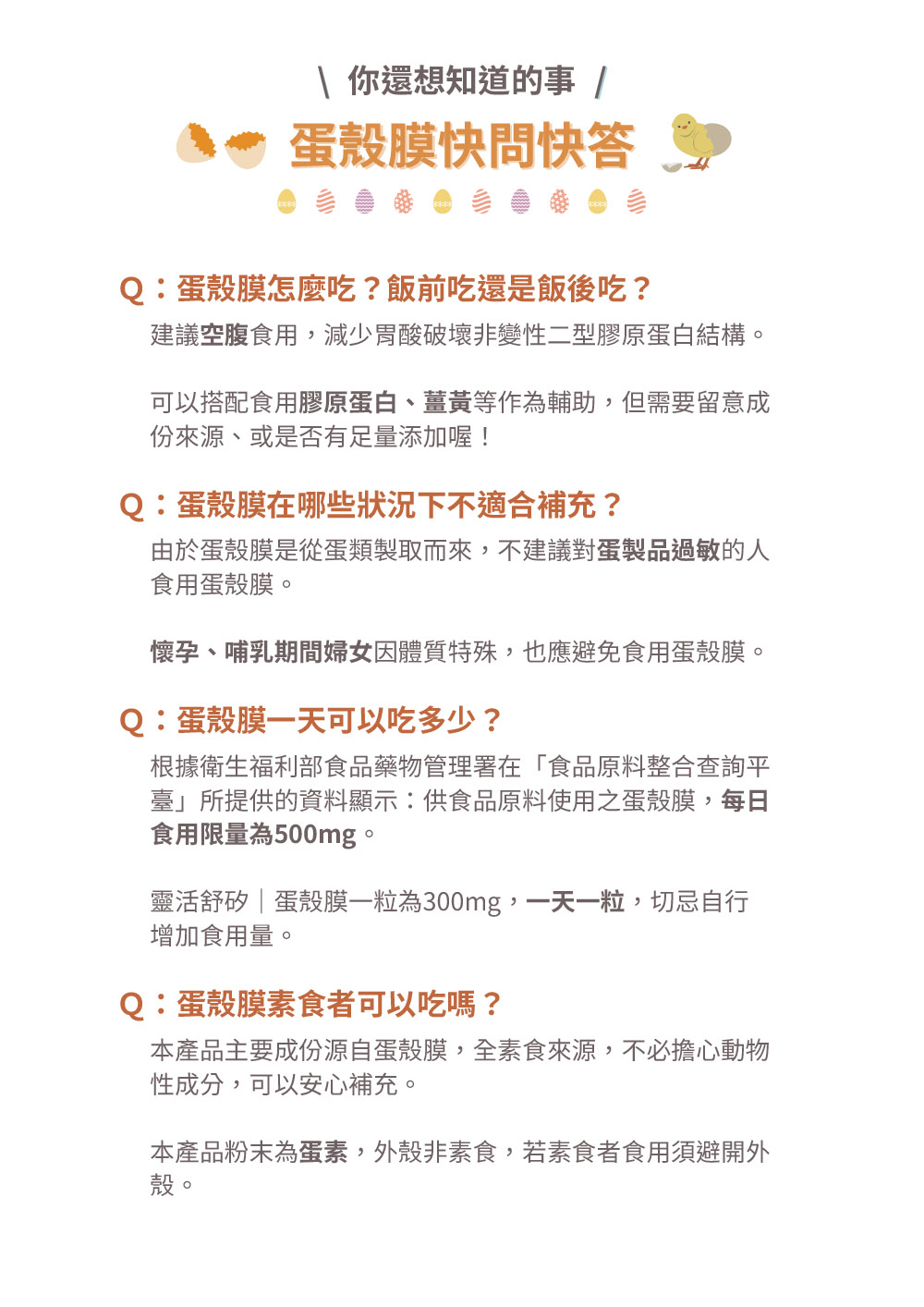 4. 孕婦、哺乳婦、特殊體質或正在服用藥物者、對蛋過敏者,請先洽詢醫師建議後食用。