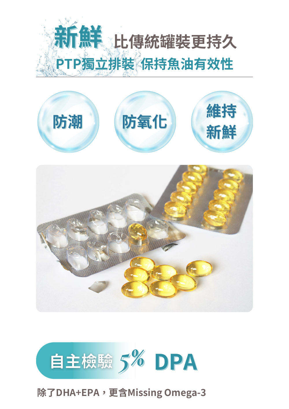 2. 成份:VIVOMEGA™️ 魚油、維生素E (抗氧化劑)。