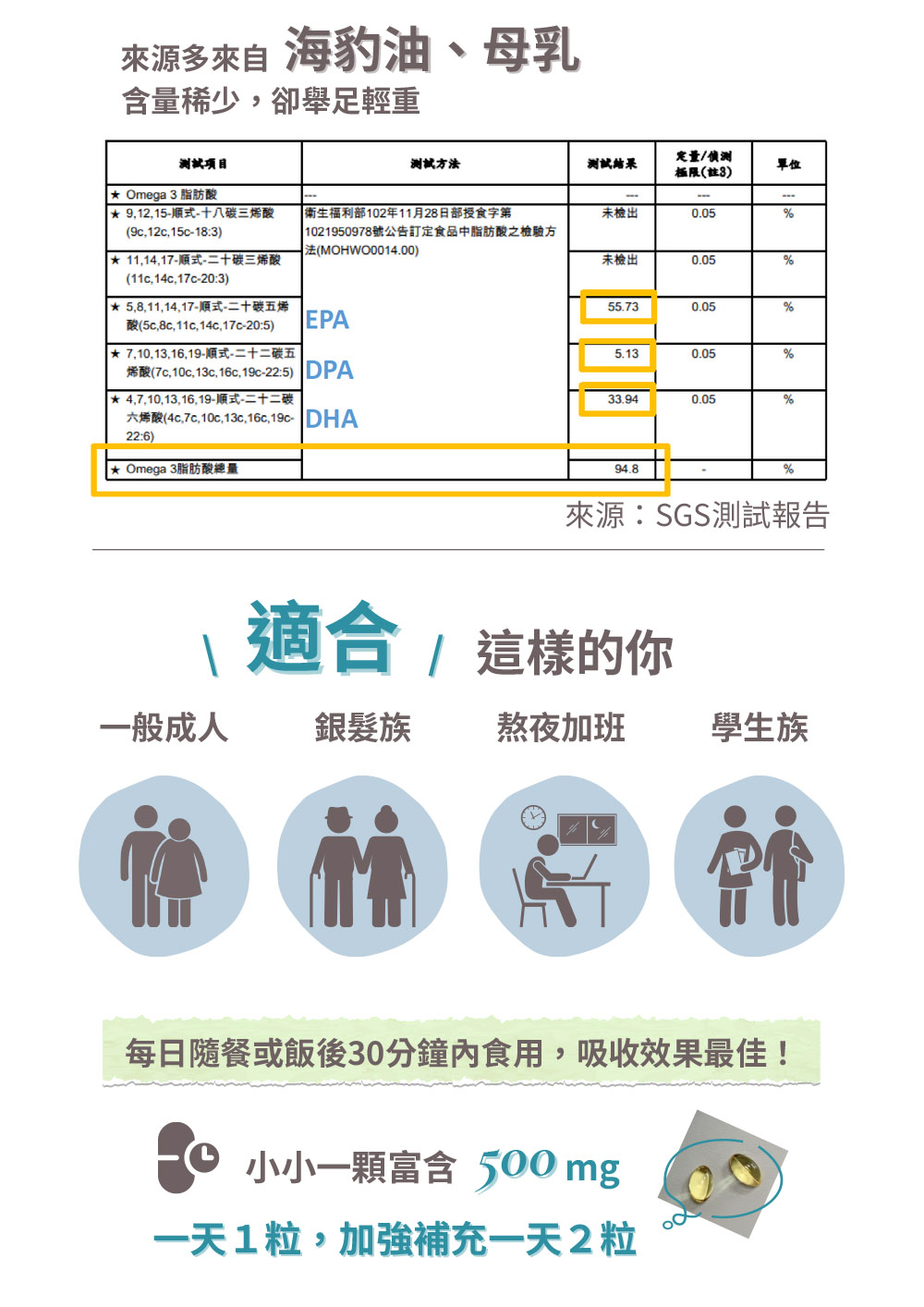 8. 過敏原資訊:本產品含有魚油,不適合對其過敏體質者食用。