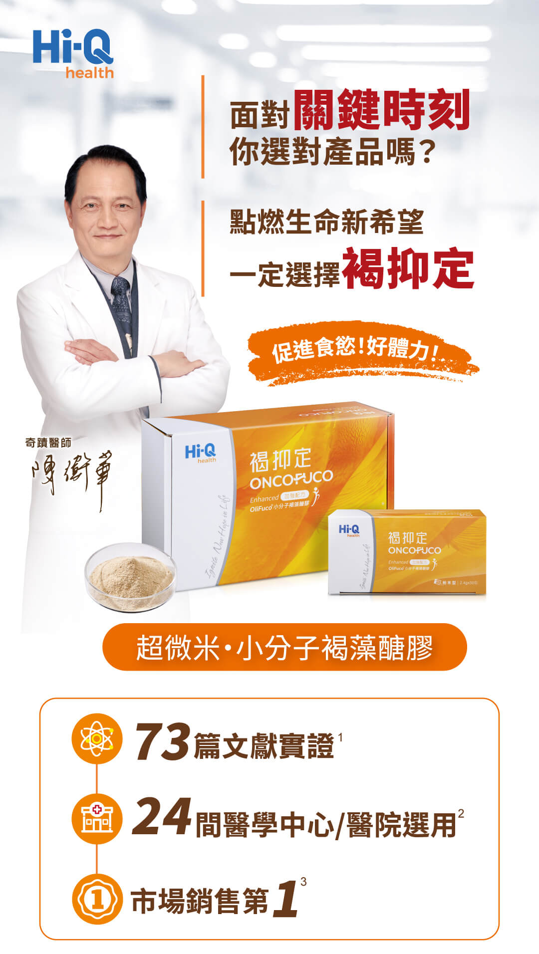 「海洋至寶」Olifuco小分子褐藻醣膠,源自深海-幫助重拾活力的秘密。Hi-Q運用獨特的酵素萃取技術,精粹分子量僅500道爾頓,有別於市售的褐藻醣膠多為30000道爾頓的大分子結構,可有效提升吸收率,補元氣,健康更有感。