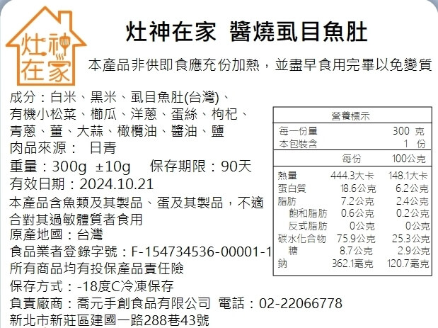 *請冷凍保存,並盛裝在適合容器以電鍋加熱後食用。
