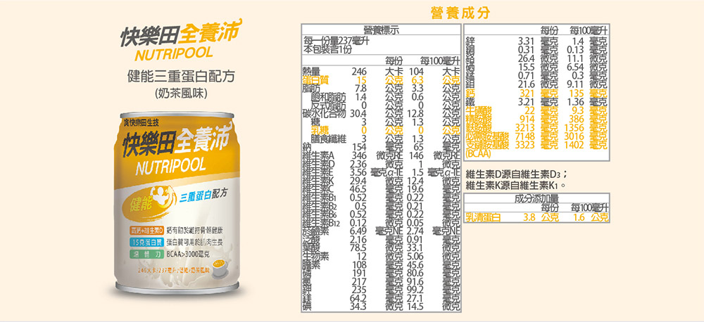 • 本品含多種營養素,長時間放置偶有沉澱情形,開罐前請充分搖勻